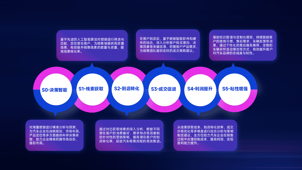 通过拓宽潜在客户来源、、、、优化线索分配并提高到店转化率,,,以增强销售效率。。同时,,,利用线索数据不断优化分析模型,,有效提升转化率,,,,扩大营销影响力。。
